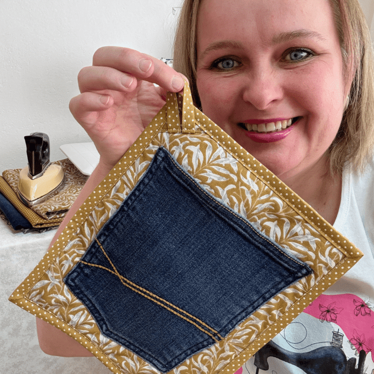 Nikdy nevíte, kde na vás vykoukne inspirace k šití. Když jsem ve facebookové skupině začala sdílet šité věci z rifloviny, jedna ze švadlenek vložila fotku chňapky s riflovou kapsičkou. Na první pohled mě zaujala. A hned jsem věděla – tohle musí být další projekt do workshopu Šiju pro radost. Jak chňapka vypadá? Vrchní stranu jsem ušila z bavlněné látky – tam si můžete vyhrát s barvou...